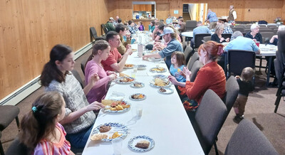 We had a wonderful celebration on easter 2025. We started with a pitch in breakfast and fellowship at 9 30. We loved seeing everyone, many delicious dishes were enjoyed, homemade sausage, and the first watermelon of the season. Our service was beautiful and worshipful as we celebrated the hope that we have in Jesus Christ. Pastor Glen gave an encouraging sermon about Jesus's resurrection and what that means to us. We worshipped in song and prayed for one another. We were blessed to be together acknowledging the day He rose again, and we know that our songs of worship and praise joined the praises of many many faithful believers in Alaska and around the world praise God for His church may we remain steadfast and faithful to Him and His Word.