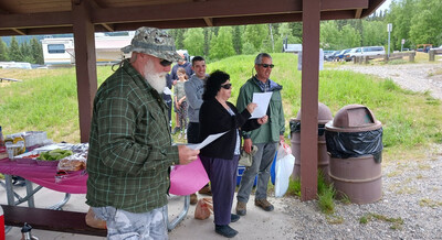 Glen presenting Pastor Brian Williams and Heather, the new pastor and wife at Kenny Lake Chapel.
